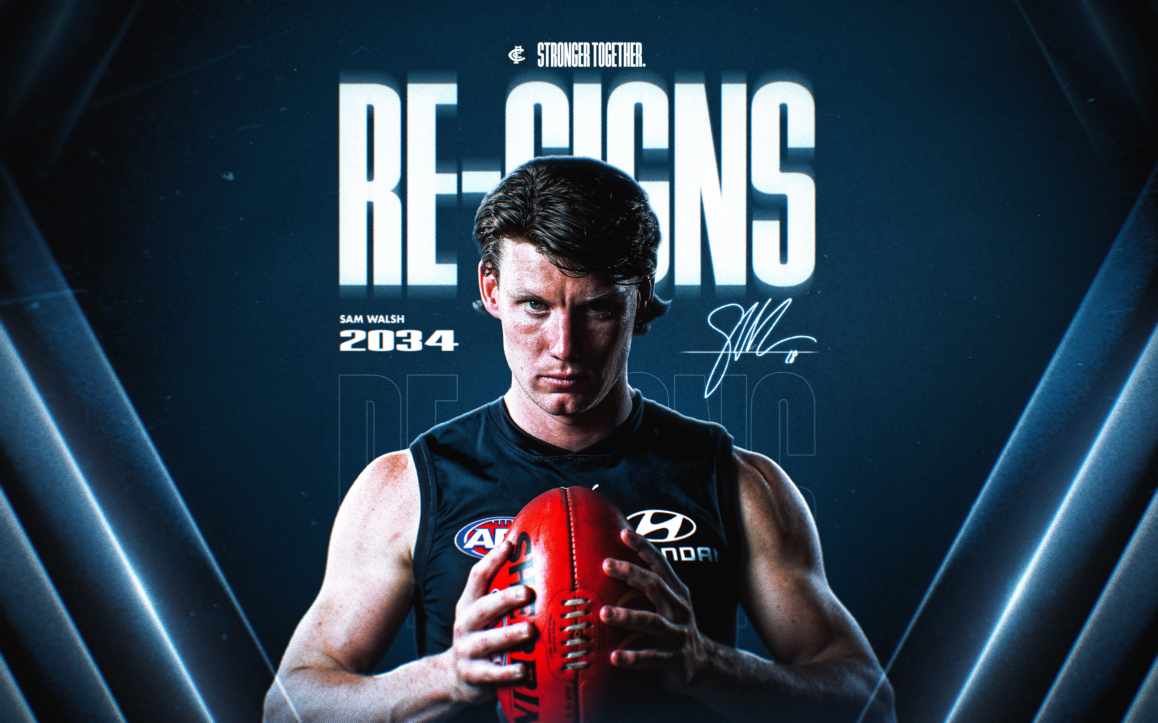 SAM Walsh is staying in the Navy Blue.On the eve of the 2026 AFL season, the Carlton co-vice captain has turned his back on free agency to commit his long-term future and remain at IKON Park, in a significant show of faith in the direction of the Blues.Walsh is the epitome of playing for the monogram: a team-first, hard-edged, selfless player who leads by example as a competitive beast.The Navy Blue faithful can now enjoy seeing their No.18 play a leading hand in driving Carlton forward for the next eight years, as the Club steps into a new phase following a period of significant change.The 25-year-old began his journey at the Blues after being selected with the No.1 overall pick in the 2018 AFL Draft.His impact on the competition was immediate, winning the 2019 AFL Rising Star, 2019 AFLPA Best First-Year Player and 2020 AFLCA Best Young Player. He played in every game across his first three seasons, the last of which resulted in a fourth-place finish in the 2021 Brownlow Medal with 30 votes – tying the Carlton record at the time.He went on to win the John Nicholls Medal and earn All-Australian honours at the end of that year, and by 2022, his outstanding leadership qualities were recognised with his appointment as co-vice captain alongside Jacob Weitering and Patrick Cripps (captain) ahead of his fourth season.The following year, Walsh’s reputation as a big game player was solidified, proving a standout in his maiden finals series, winning the 2023 Gary Ayres Medal as the AFL’s best finals player.With an elite average of 27.4 disposals over the course of his career, Walsh has established himself as one of the competition's top midfielders.Renowned for his professionalism, endurance and competitiveness, the 25-year-old is now embracing his role as a central pillar in driving the Blues’ on-field performance and culture.“I love this Club. I am a Carlton person and I couldn’t be happier to continue my career here,” Walsh said.“This was obviously a big decision for me, but it was made so much easier because I know we are heading in the right direction. I make no secret of the fact that I want to win, and I want to win with the Carlton monogram on my chest.“I truly believe that the key people we have here, and where our group is at right now, we are seeing a significant shift as we head into this next period of our football club, one that I know is going to be really exciting to be part of.“When I arrived, our Club was last on the ladder. Footy isn’t a linear experience, everyone knows that, but I am all in on the next eight years and doing everything I can to help us reach the top and stay there - the day we do will mean everything to me.“The Carlton family is like no other: the roar, the passion is unbelievable. To continue to share that with you all, I can’t wait - it is going to be special to do that together.”Head of List Management Nick Austin said Walsh’s re-signing was a huge coup for the Club, creating real momentum on the eve of the season.“We are absolutely delighted to secure Sam’s future in the Navy Blue. To get his signature before the AFL season even starts perfectly sums up the type of player and person he is, and the type of environment we want to be building where our people believe in what they are helping create,” Austin said.“Sam embodies everything we value at Carlton: elite standards, humility and a relentless drive to improve. He is someone who genuinely wants to bring success to our members and supporters.“Not only is he a brilliant player, Sam is also an exceptional leader, someone who sets the tone both on and off the field. Ever since he arrived at IKON Park, his passion for Carlton has been clear, working hard to create an environment you want to be part of.“We can’t wait to see Sam continue in the Navy Blue and are very excited for his future here at the footy club.”
